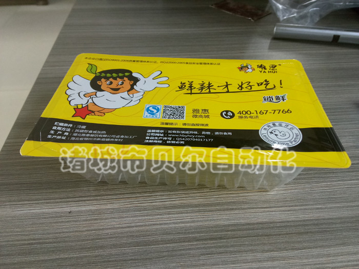 貝爾盒式包裝機(jī)適用于多種規(guī)格包裝盒,長(zhǎng)度范圍:20-460mm,寬度范圍:30-600mm,包裝效率600-2400盒/小時(shí),通過(guò)更換不同的上料系統(tǒng),可以對(duì)液體,膏體,粉末,塊狀等不同的物料進(jìn)行自動(dòng)定量真空包裝,也可配備我廠研發(fā)的貝爾機(jī)器人,可以對(duì)單個(gè)產(chǎn)品自動(dòng)上料包裝。 二、應(yīng)用范圍 適用于食品、果蔬、海產(chǎn)品、冷凍塊肉、豆制品、中藥材、進(jìn)行真空充氣的全自動(dòng)包裝。該系列包裝機(jī)除隨機(jī)配備的模具外,可以根據(jù)用戶(hù)不同產(chǎn)品需要為您設(shè)計(jì)訂做模具。 三、性能特點(diǎn)及原理